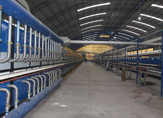 我公司引進生產設備,從原料到產品包裝一系列的保證了生產過程中的穩定,電子稱進料設備,保證了原料配比的準確無誤,為生產合格的產品提供保證,超大噸位球磨機,確保了原料在研磨過程中,細度達標,為下一步的生產提供了合格的原料,原料制粉采用了噴霧干燥塔,制作的粉料均勻,含水量低,無雜質,適合壓制成型;而壓機呢,引進了1500T全自動壓機,壓制出來的磚坯平整、光滑,尺寸無誤差,適合燒制,為了保證產品的出廠,我公司又投入巨資引進超長超寬截面燒制窯爐,窯爐采用天熱氣燒制,保證了磚體在燒制過程中穩定,不變形,無裂紋,無翹曲及大小頭,平整光滑,人工包裝保證了出廠的每塊磚都完全篩選一遍,確保無一塊不合格產品流向市場。