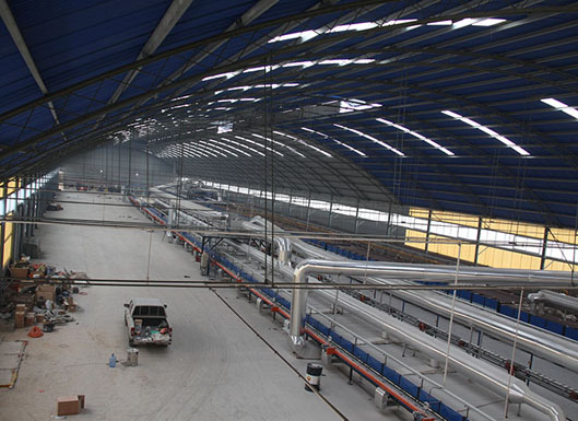 我公司引進生產設備,從原料到產品包裝一系列的保證了生產過程中的穩定,電子稱進料設備,保證了原料配比的準確無誤,為生產合格的產品提供保證,超大噸位球磨機,確保了原料在研磨過程中,細度達標,為下一步的生產提供了合格的原料,原料制粉采用了噴霧干燥塔,制作的粉料均勻,含水量低,無雜質,適合壓制成型;而壓機呢,引進了1500T全自動壓機,壓制出來的磚坯平整、光滑,尺寸無誤差,適合燒制,為了保證產品的出廠,我公司又投入巨資引進超長超寬截面燒制窯爐,窯爐采用天熱氣燒制,保證了磚體在燒制過程中穩定,不變形,無裂紋,無翹曲及大小頭,平整光滑,人工包裝保證了出廠的每塊磚都完全篩選一遍,確保無一塊不合格產品流向市場。