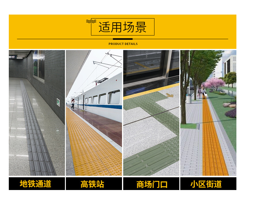 *吸水率低:中冠高鐵地鐵盲道地磚吸水率≤0.2%,吸水率低,防腐性能好,在任何場(chǎng)所都可放心使用。