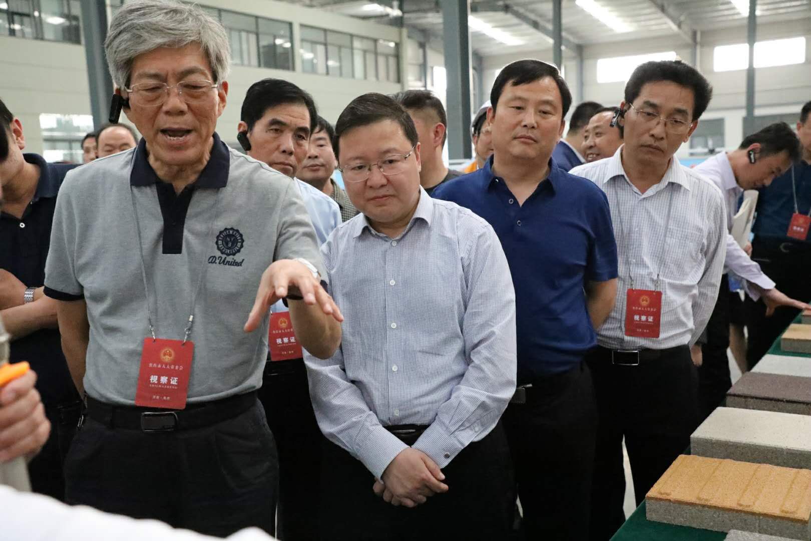 隨著海綿城市的加速推進,陶瓷透水磚作為新型海綿城市建設的主力軍成為了熱銷產品。昨日,焦作市人大調研團隊蒞臨我司檢查指導工作,市領導在陶瓷透水磚的生產線前駐足聆聽講解,并對我司的工作給予了充分肯定。